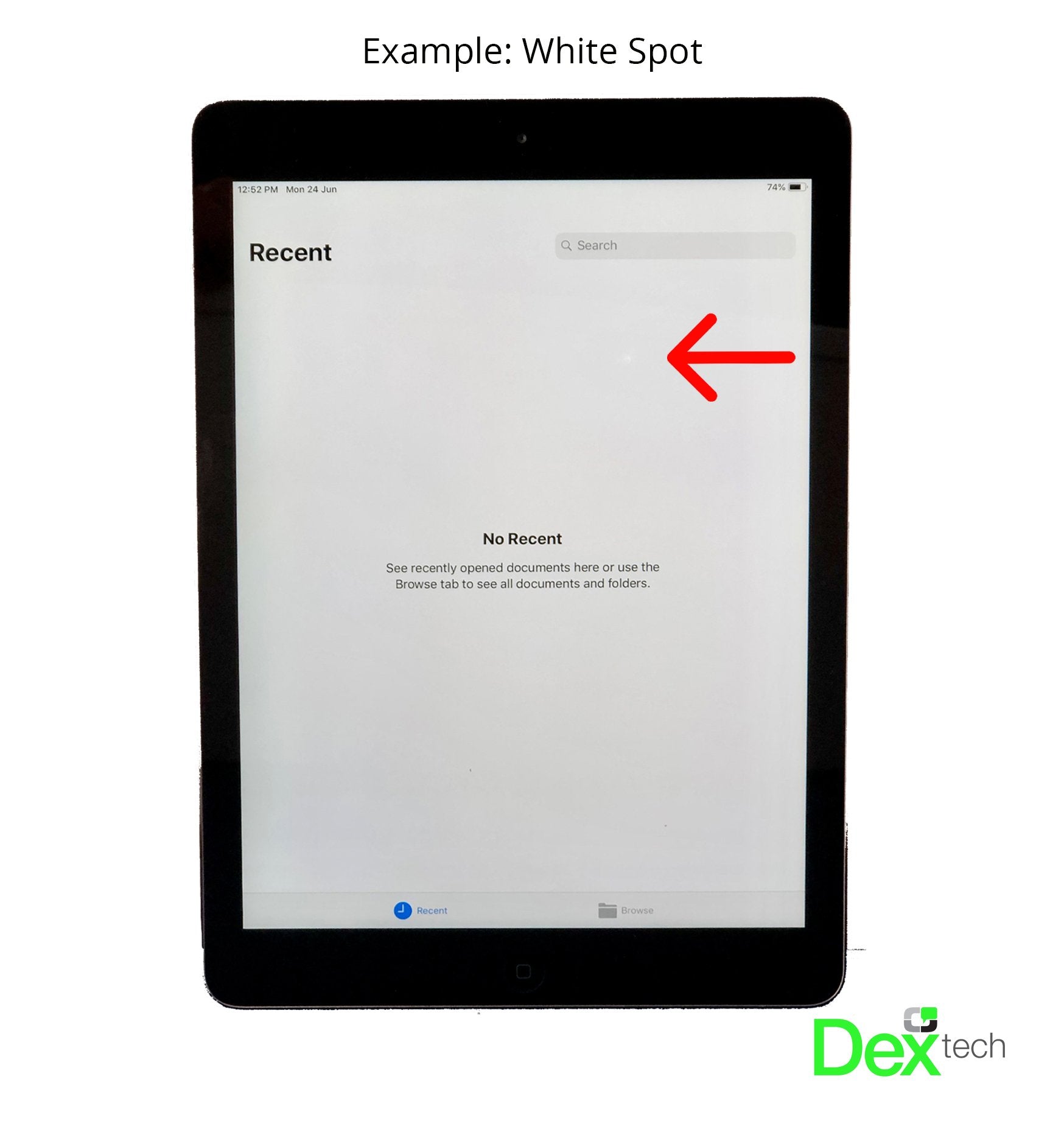 * Light spot on screen - only visible on white backgrounds, see photo.